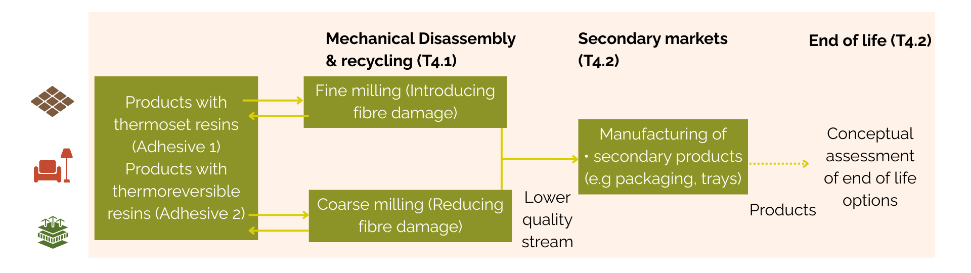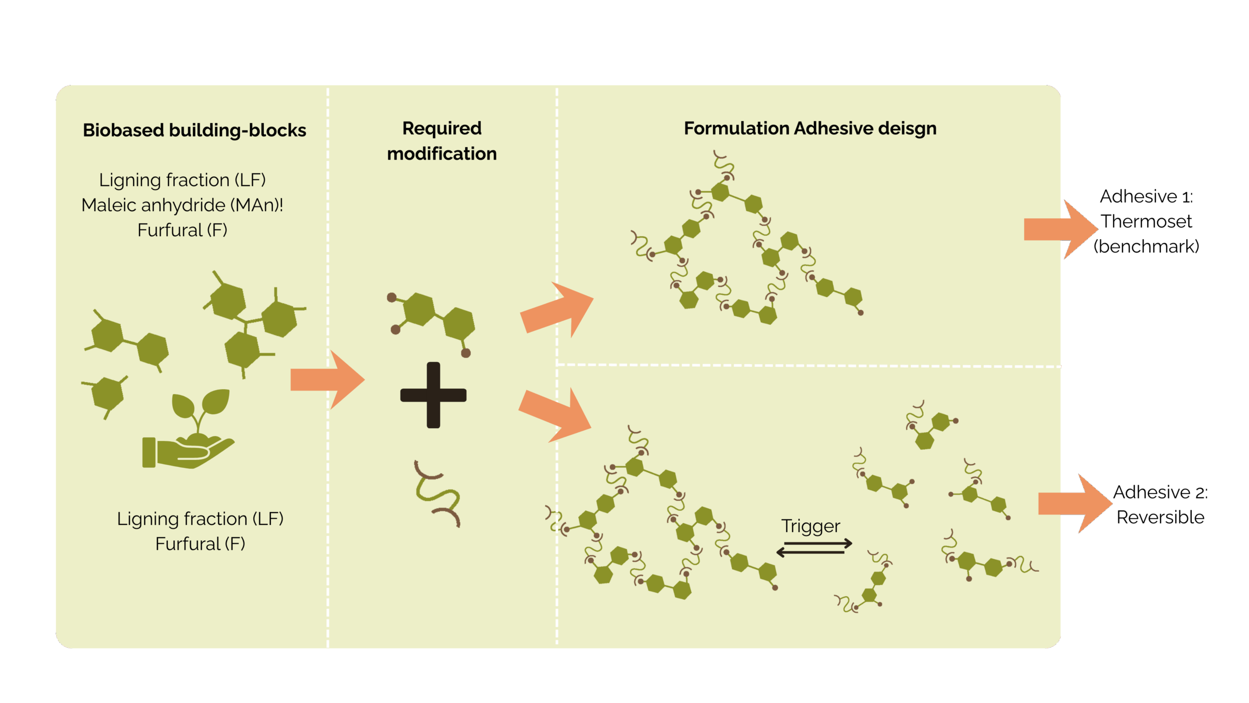 To guarantee the recyclability of the CIRCULAR-C wood panels, it is necessary to ensure that the chemicals form reversible bonds.