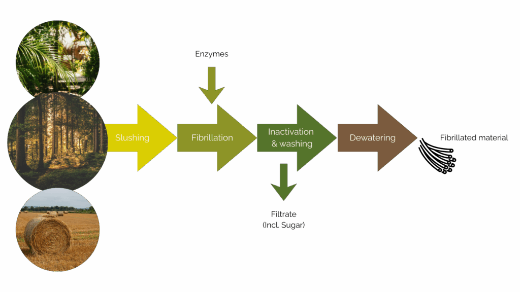 To match the sustainable structure within the panels, micro- and nanocellulose coatings are engineered for their exterior. These novel adhesives enable efficient fibre disintegration through enzymatic HefCel processing, and their fire-retardant properties are further enhanced through the chemical phosphorylation of nanocellulose.